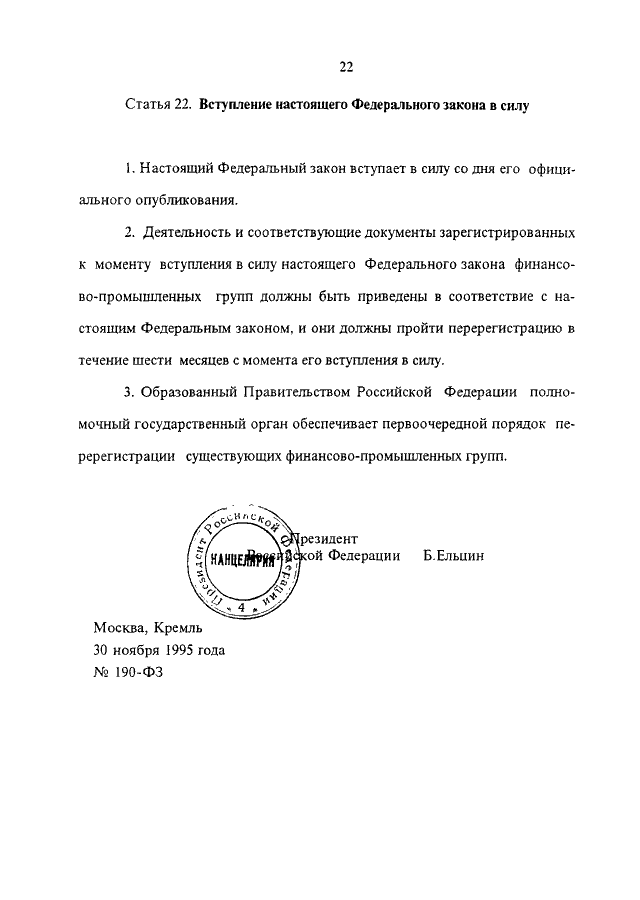 ФЕДЕРАЛЬНЫЙ ЗАКОН от 30.11.1995 N 190-ФЗ