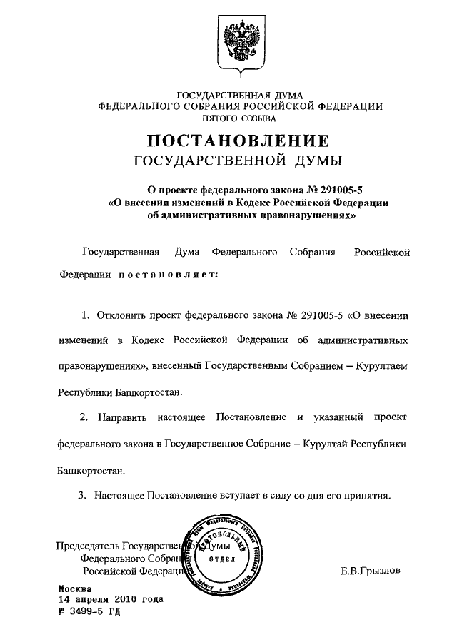 ПОСТАНОВЛЕНИЕ ГД ФС РФ от 14.04.2010 N 3499-5 ГД