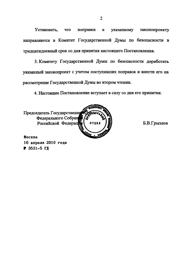 ПОСТАНОВЛЕНИЕ ГД ФС РФ от 16.04.2010 N 3531-5 ГД