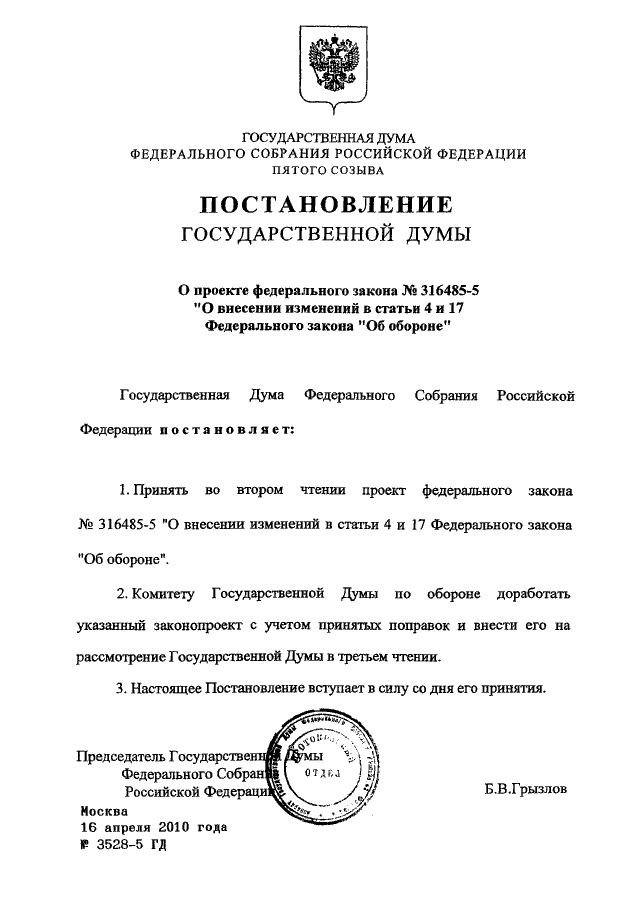 ПОСТАНОВЛЕНИЕ ГД ФС РФ от 16.04.2010 N 3528-5 ГД