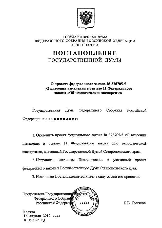 ПОСТАНОВЛЕНИЕ ГД ФС РФ от 14.04.2010 N 3500-5 ГД