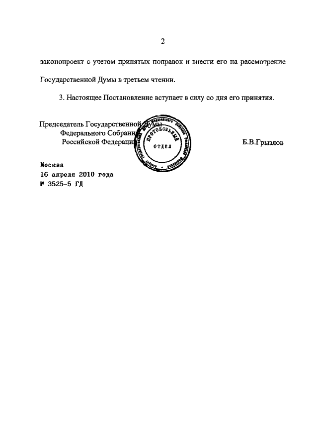 ПОСТАНОВЛЕНИЕ ГД ФС РФ от 16.04.2010 N 3525-5 ГД