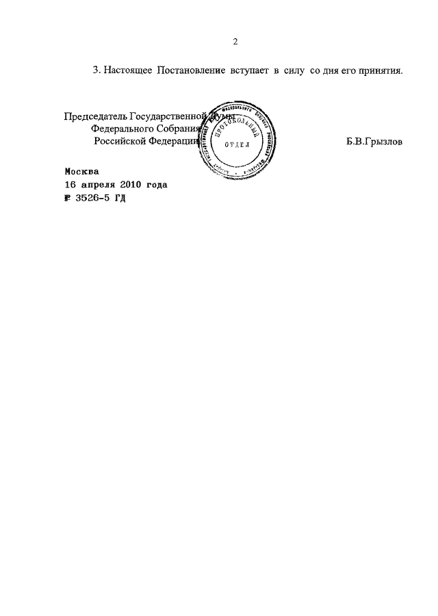 ПОСТАНОВЛЕНИЕ ГД ФС РФ от 16.04.2010 N 3526-5 ГД
