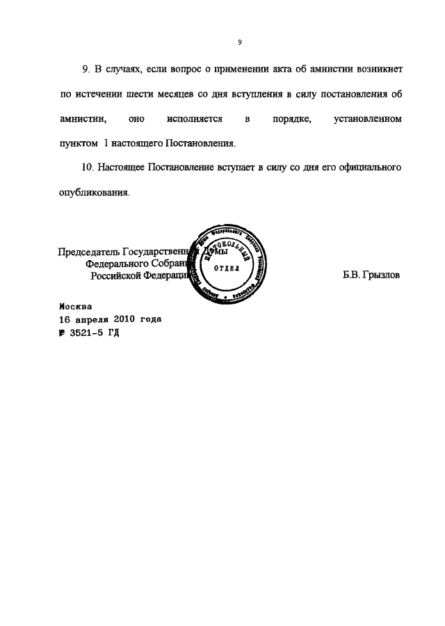 ПОСТАНОВЛЕНИЕ ГД ФС РФ от 16.04.2010 N 3521-5 ГД