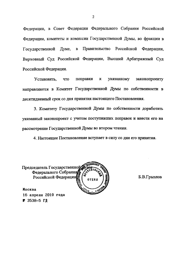ПОСТАНОВЛЕНИЕ ГД ФС РФ от 16.04.2010 N 3538-5 ГД