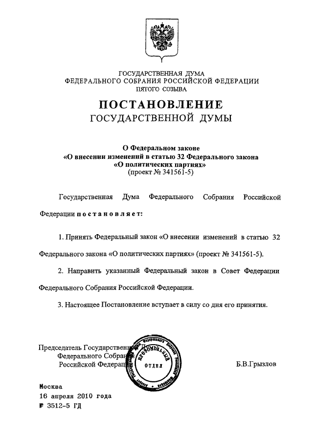 ПОСТАНОВЛЕНИЕ ГД ФС РФ от 16.04.2010 N 3512-5 ГД