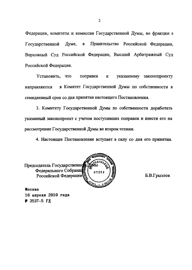ПОСТАНОВЛЕНИЕ ГД ФС РФ от 16.04.2010 N 3537-5 ГД