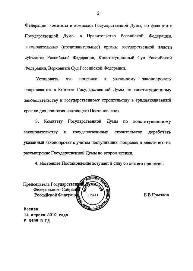 ПОСТАНОВЛЕНИЕ ГД ФС РФ от 14.04.2010 N 3498-5 ГД