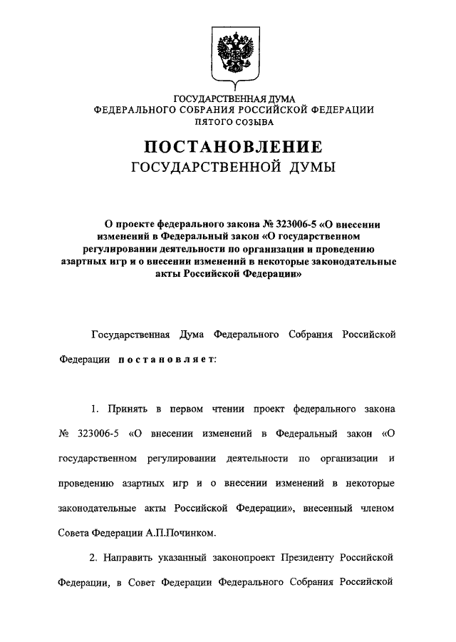 ОРГАНИЗАЦИИ И ПРОВЕДЕНИЮ АЗАРТНЫХ ИГР И О ВНЕСЕНИИ ИЗМЕНЕНИЙ В