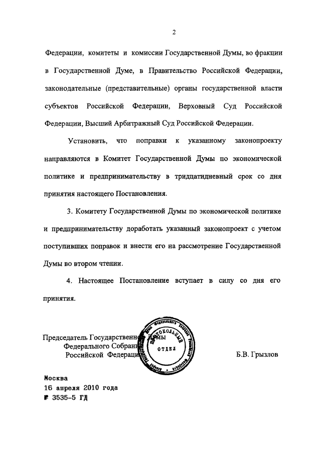 ПОСТАНОВЛЕНИЕ ГД ФС РФ от 16.04.2010 N 3535-5 ГД