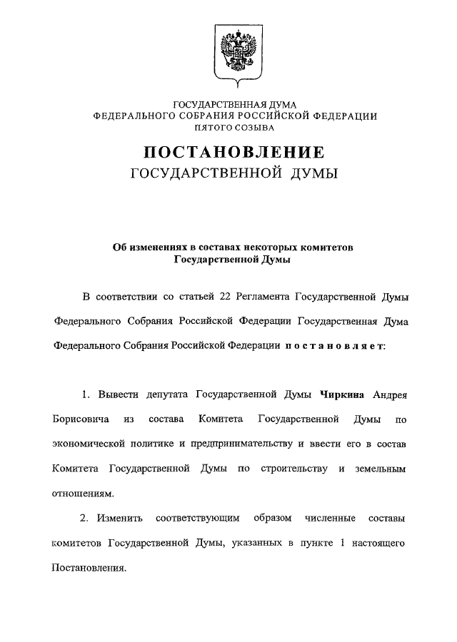 "ОБ ИЗМЕНЕНИЯХ В СОСТАВАХ НЕКОТОРЫХ КОМИТЕТОВ ГОСУДАРСТВЕННОЙ ДУМЫ"