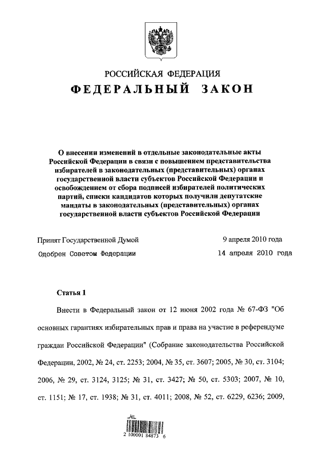 ФЕДЕРАЛЬНЫЙ ЗАКОН от 22.04.2010 N 63-ФЗ