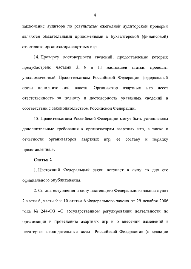 "О ВНЕСЕНИИ ИЗМЕНЕНИЙ В СТАТЬЮ 6 ФЕДЕРАЛЬНОГО ЗАКОНА "О ГОСУДАРСТВЕННОМ РЕГУЛИРОВАНИИ ДЕЯТЕЛЬНОСТИ ПО ОРГАНИЗАЦИИ И ПРОВЕДЕНИЮ АЗАРТНЫХ ИГР И О ВНЕСЕНИИ ИЗМЕНЕНИЙ В НЕКОТОРЫЕ ЗАКОНОДАТЕЛЬНЫЕ АКТЫ РОССИЙСКОЙ ФЕДЕРАЦИИ"