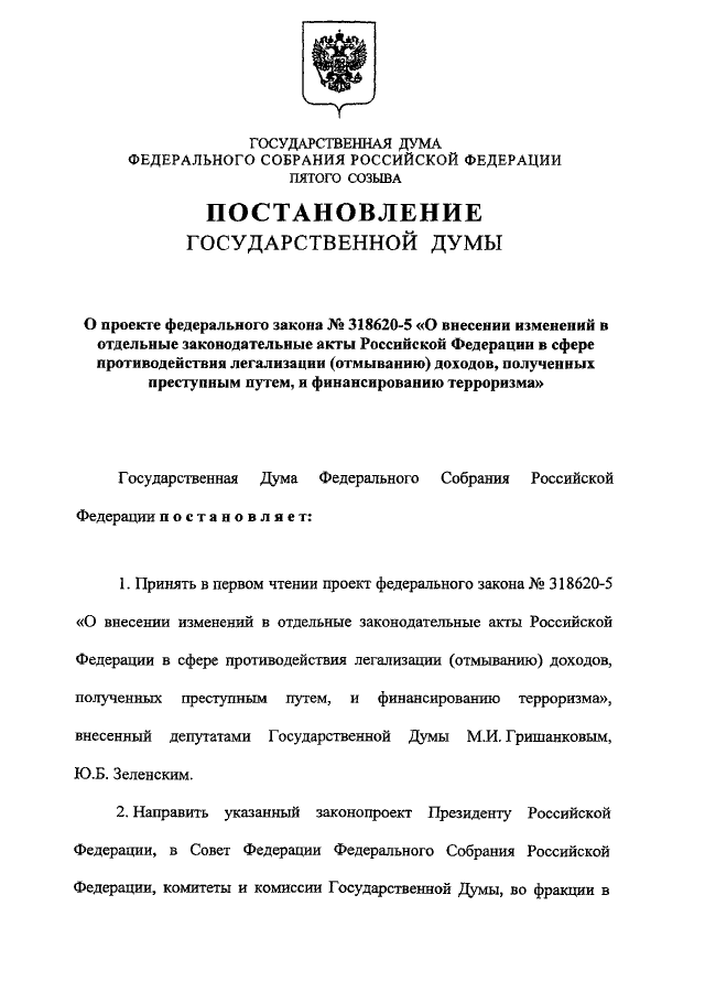 "О ПРОЕКТЕ ФЕДЕРАЛЬНОГО ЗАКОНА N 318620-5 "О ВНЕСЕНИИ ИЗМЕНЕНИЙ В