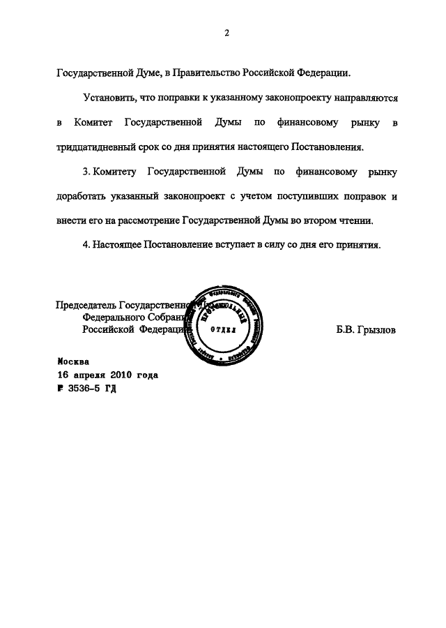 ПОСТАНОВЛЕНИЕ ГД ФС РФ от 16.04.2010 N 3536-5 ГД