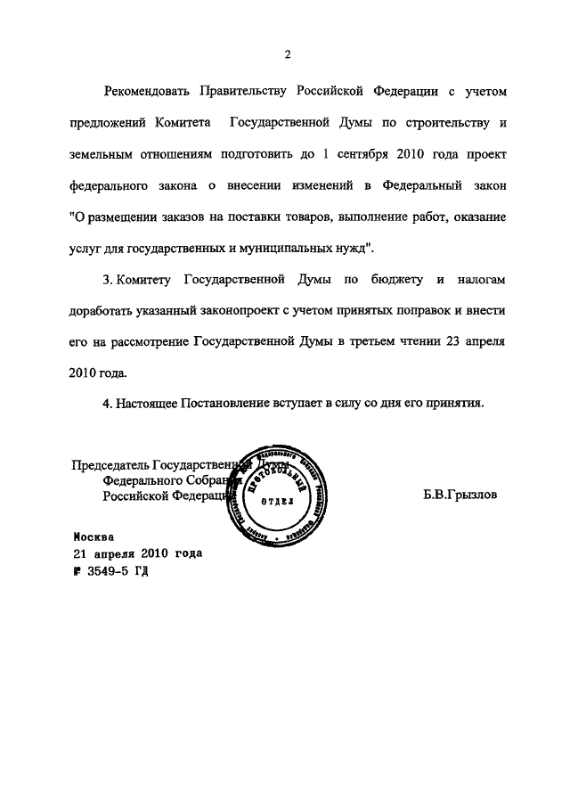 ПОСТАНОВЛЕНИЕ ГД ФС РФ от 21.04.2010 N 3549-5 ГД