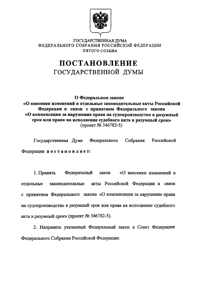 ЗАКОНОДАТЕЛЬНЫЕ АКТЫ РОССИЙСКОЙ ФЕДЕРАЦИИ В СВЯЗИ С ПРИНЯТИЕМ