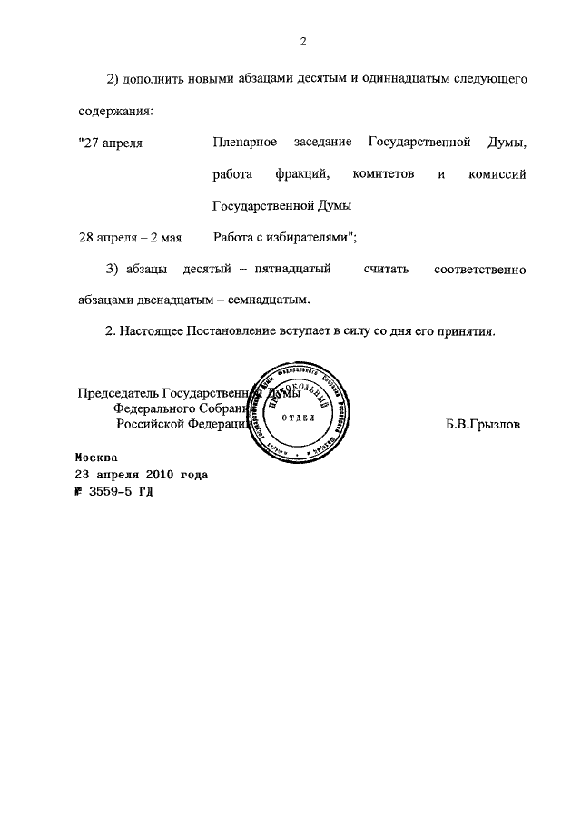 ПОСТАНОВЛЕНИЕ ГД ФС РФ от 23.04.2010 N 3559-5 ГД