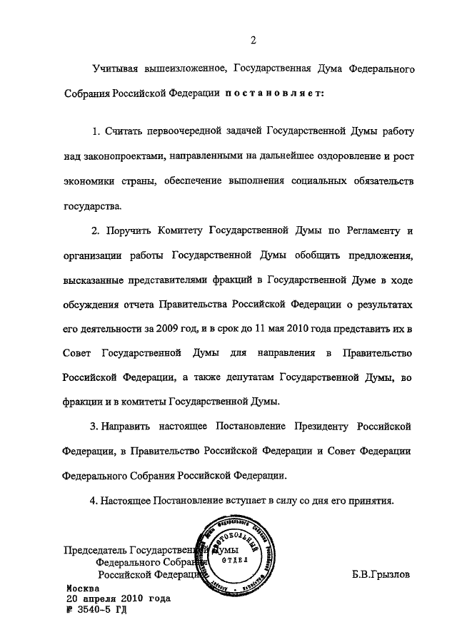 ПОСТАНОВЛЕНИЕ ГД ФС РФ от 20.04.2010 N 3540-5 ГД