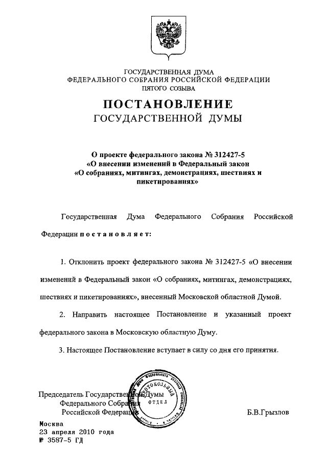 ПОСТАНОВЛЕНИЕ ГД ФС РФ от 23.04.2010 N 3587-5 ГД