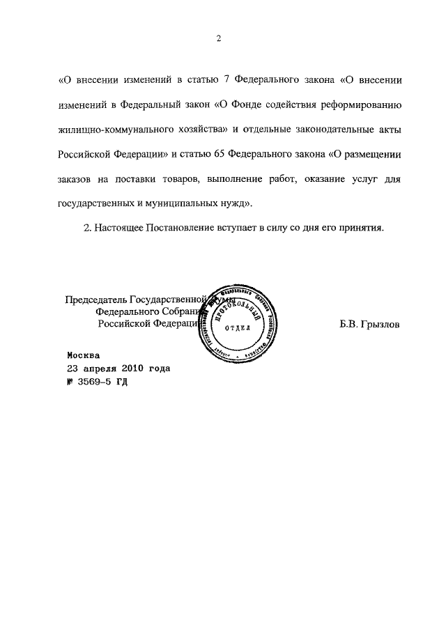 ПОСТАНОВЛЕНИЕ ГД ФС РФ от 23.04.2010 N 3569-5 ГД