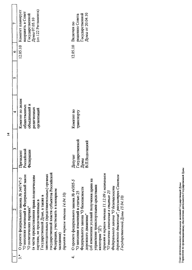 "О КАЛЕНДАРЕ РАССМОТРЕНИЯ ВОПРОСОВ ГОСУДАРСТВЕННОЙ ДУМОЙ С 5 ПО 21 МАЯ 2010 ГОДА"