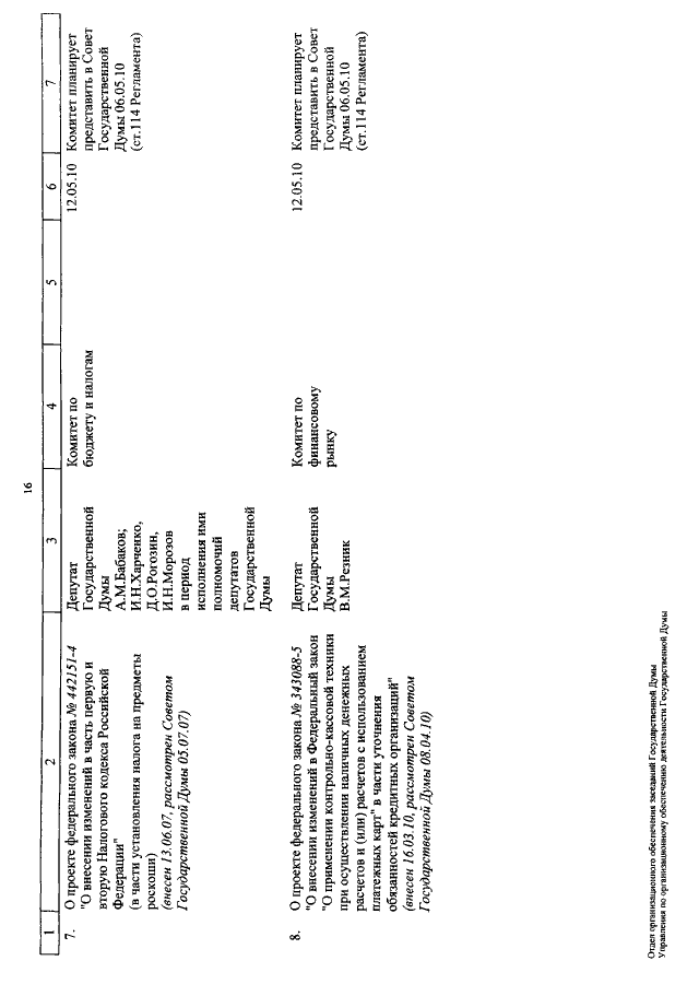 "О КАЛЕНДАРЕ РАССМОТРЕНИЯ ВОПРОСОВ ГОСУДАРСТВЕННОЙ ДУМОЙ С 5 ПО 21 МАЯ 2010 ГОДА"