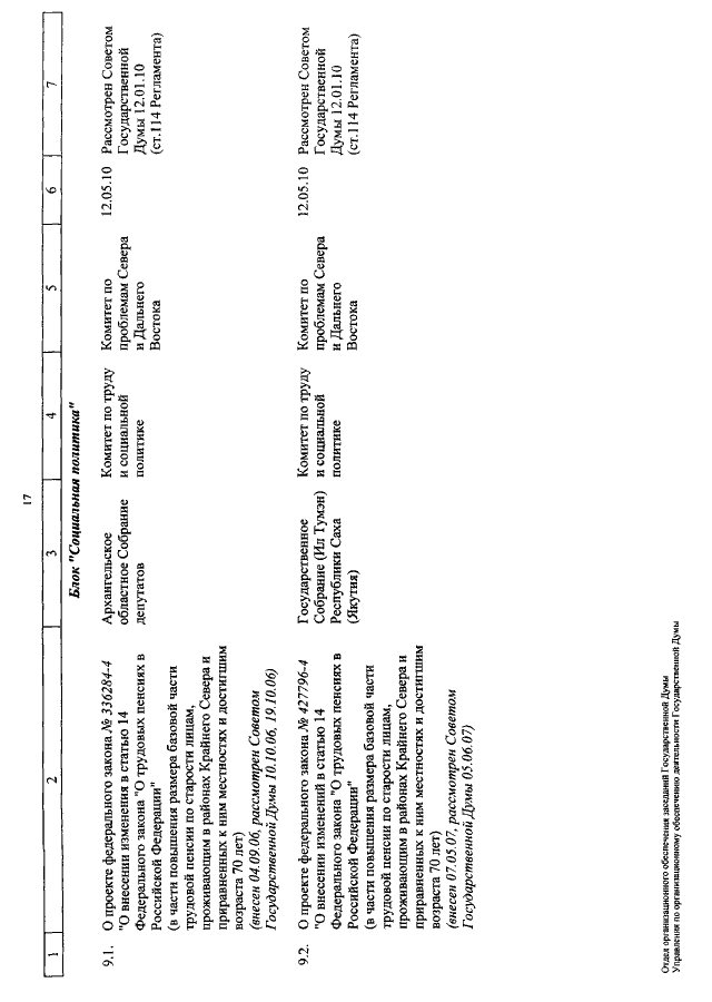 "О КАЛЕНДАРЕ РАССМОТРЕНИЯ ВОПРОСОВ ГОСУДАРСТВЕННОЙ ДУМОЙ С 5 ПО 21 МАЯ 2010 ГОДА"