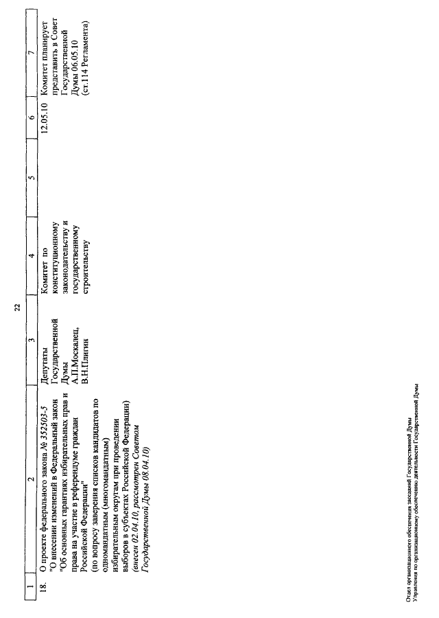 "О КАЛЕНДАРЕ РАССМОТРЕНИЯ ВОПРОСОВ ГОСУДАРСТВЕННОЙ ДУМОЙ С 5 ПО 21 МАЯ 2010 ГОДА"