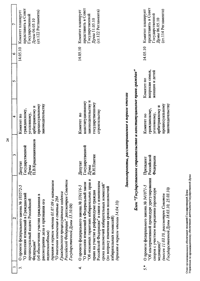 "О КАЛЕНДАРЕ РАССМОТРЕНИЯ ВОПРОСОВ ГОСУДАРСТВЕННОЙ ДУМОЙ С 5 ПО 21 МАЯ 2010 ГОДА"