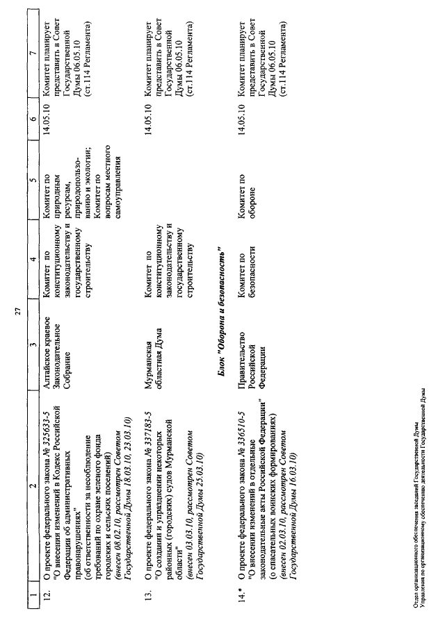 "О КАЛЕНДАРЕ РАССМОТРЕНИЯ ВОПРОСОВ ГОСУДАРСТВЕННОЙ ДУМОЙ С 5 ПО 21 МАЯ 2010 ГОДА"