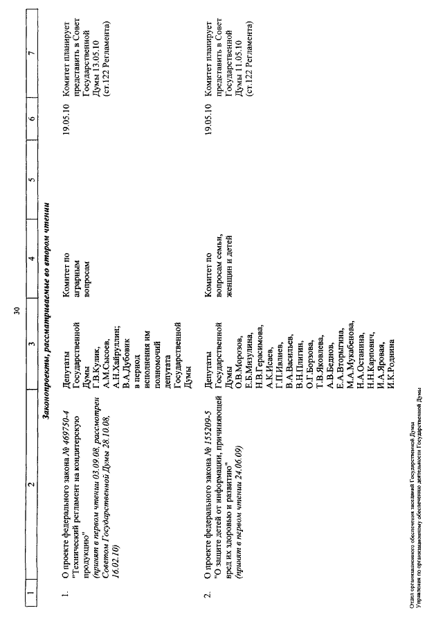 "О КАЛЕНДАРЕ РАССМОТРЕНИЯ ВОПРОСОВ ГОСУДАРСТВЕННОЙ ДУМОЙ С 5 ПО 21 МАЯ 2010 ГОДА"