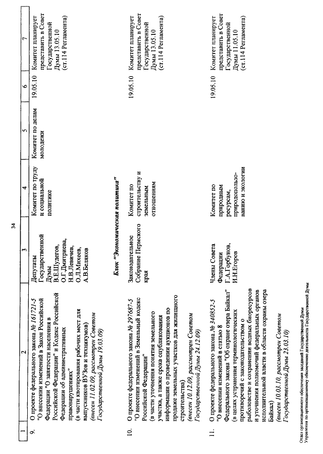 "О КАЛЕНДАРЕ РАССМОТРЕНИЯ ВОПРОСОВ ГОСУДАРСТВЕННОЙ ДУМОЙ С 5 ПО 21 МАЯ 2010 ГОДА"