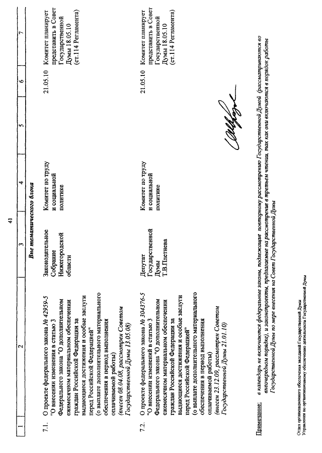 "О КАЛЕНДАРЕ РАССМОТРЕНИЯ ВОПРОСОВ ГОСУДАРСТВЕННОЙ ДУМОЙ С 5 ПО 21 МАЯ 2010 ГОДА"