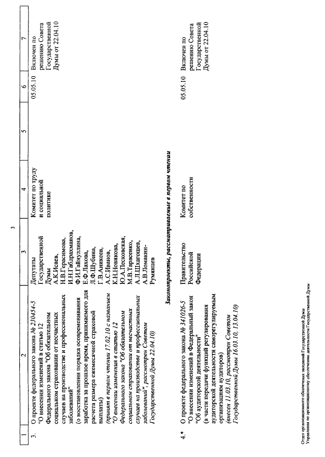 "О КАЛЕНДАРЕ РАССМОТРЕНИЯ ВОПРОСОВ ГОСУДАРСТВЕННОЙ ДУМОЙ С 5 ПО 21 МАЯ 2010 ГОДА"