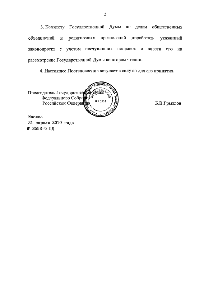 ПОСТАНОВЛЕНИЕ ГД ФС РФ от 21.04.2010 N 3553-5 ГД