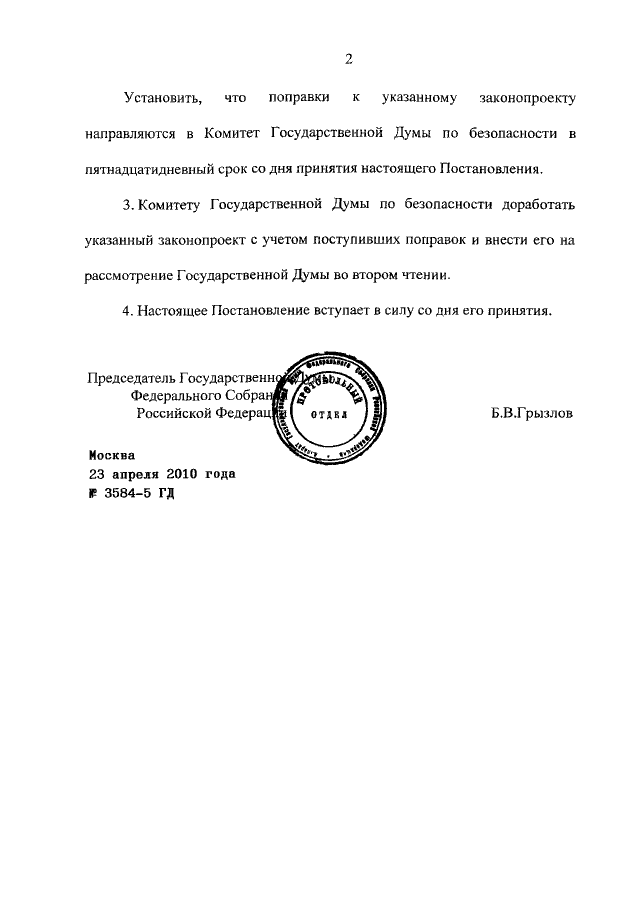 ПОСТАНОВЛЕНИЕ ГД ФС РФ от 23.04.2010 N 3584-5 ГД