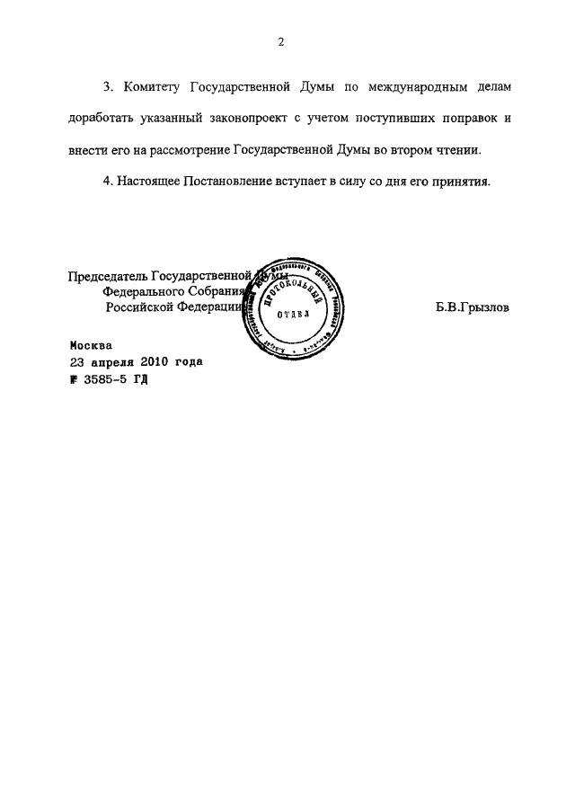 ПОСТАНОВЛЕНИЕ ГД ФС РФ от 23.04.2010 N 3585-5 ГД