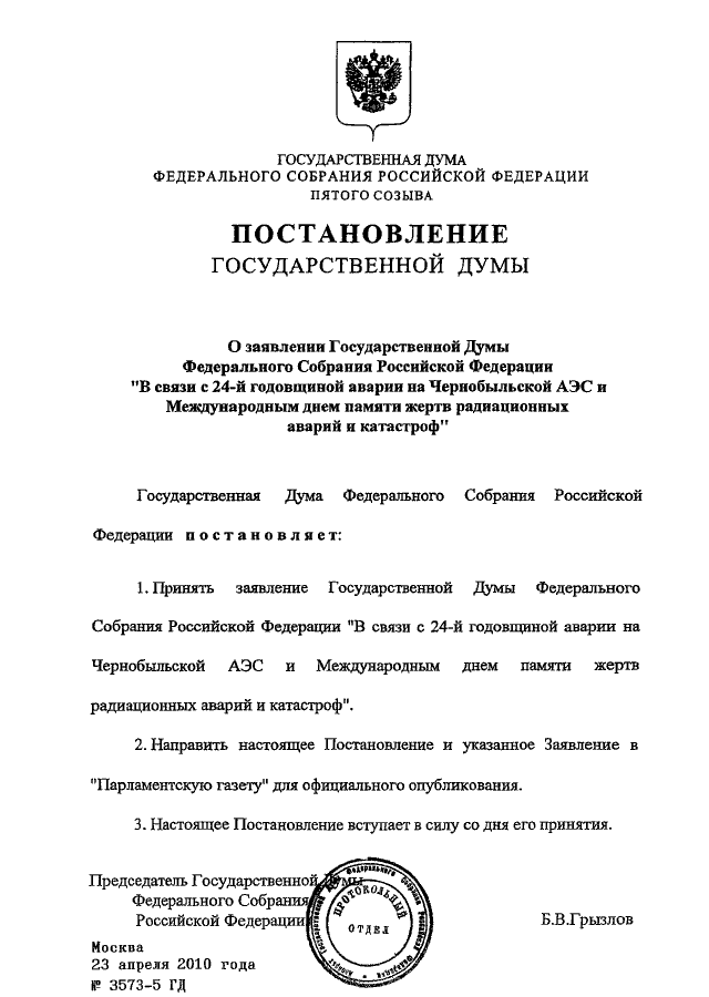 ПОСТАНОВЛЕНИЕ ГД ФС РФ от 23.04.2010 N 3573-5 ГД