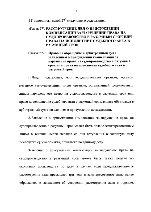 "О ВНЕСЕНИИ ИЗМЕНЕНИЙ В ОТДЕЛЬНЫЕ ЗАКОНОДАТЕЛЬНЫЕ АКТЫ РОССИЙСКОЙ ФЕДЕРАЦИИ В СВЯЗИ С ПРИНЯТИЕМ ФЕДЕРАЛЬНОГО ЗАКОНА "О КОМПЕНСАЦИИ ЗА НАРУШЕНИЕ ПРАВА НА СУДОПРОИЗВОДСТВО В РАЗУМНЫЙ СРОК ИЛИ ПРАВА НА ИСПОЛНЕНИЕ СУДЕБНОГО АКТА В РАЗУМНЫЙ СРОК"
