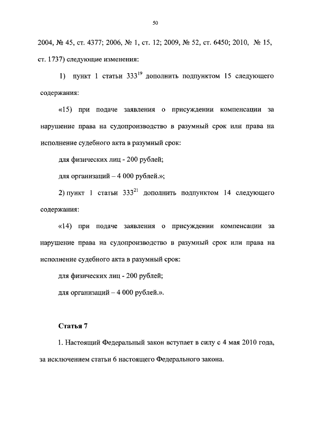 "О ВНЕСЕНИИ ИЗМЕНЕНИЙ В ОТДЕЛЬНЫЕ ЗАКОНОДАТЕЛЬНЫЕ АКТЫ РОССИЙСКОЙ ФЕДЕРАЦИИ В СВЯЗИ С ПРИНЯТИЕМ ФЕДЕРАЛЬНОГО ЗАКОНА "О КОМПЕНСАЦИИ ЗА НАРУШЕНИЕ ПРАВА НА СУДОПРОИЗВОДСТВО В РАЗУМНЫЙ СРОК ИЛИ ПРАВА НА ИСПОЛНЕНИЕ СУДЕБНОГО АКТА В РАЗУМНЫЙ СРОК"