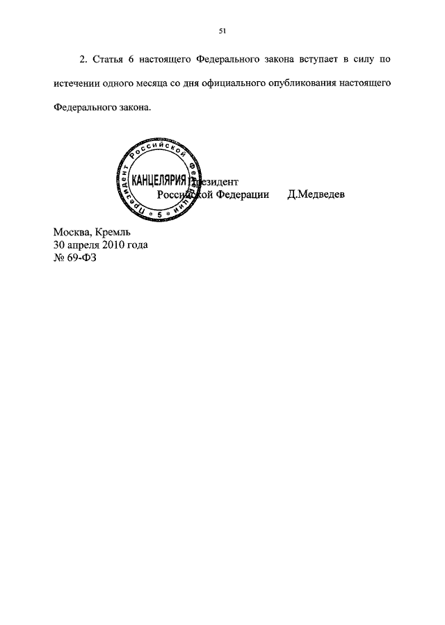 ФЕДЕРАЛЬНЫЙ ЗАКОН от 30.04.2010 N 69-ФЗ