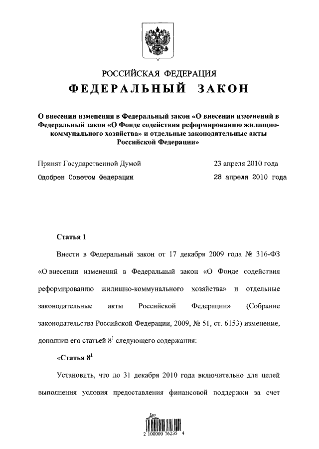 (принят ГД ФС РФ 23.04.2010)