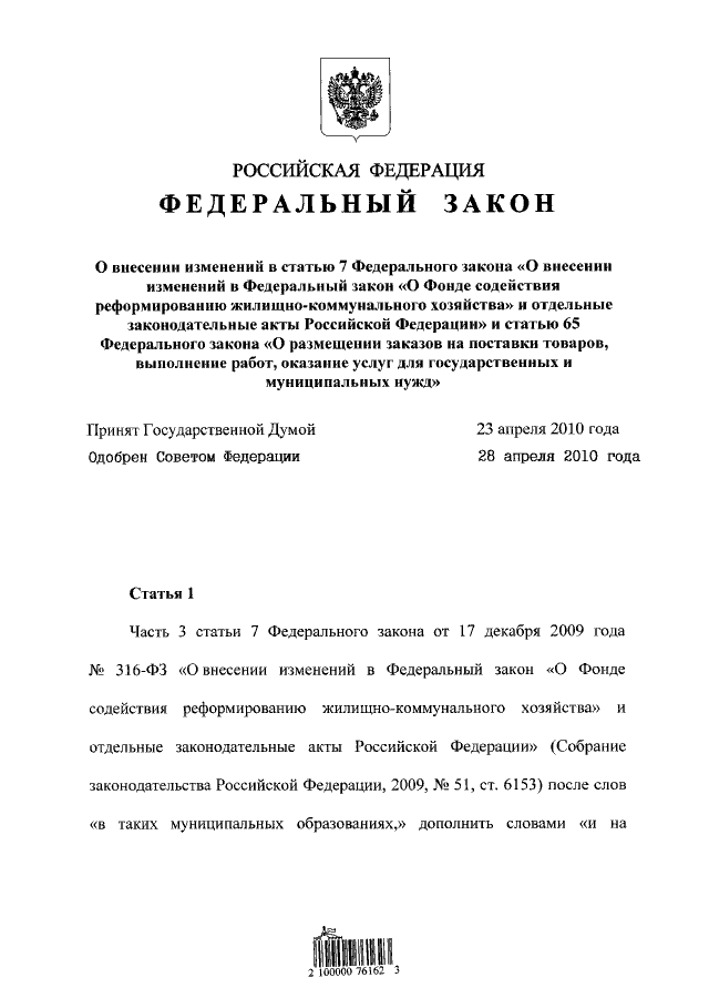 ФЕДЕРАЛЬНЫЙ ЗАКОН от 05.05.2010 N 78-ФЗ
