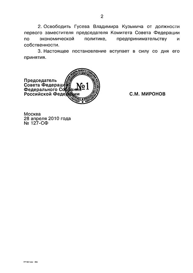ПОСТАНОВЛЕНИЕ СФ ФС РФ от 28.04.2010 N 127-СФ