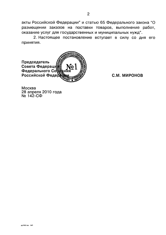 ПОСТАНОВЛЕНИЕ СФ ФС РФ от 28.04.2010 N 142-СФ