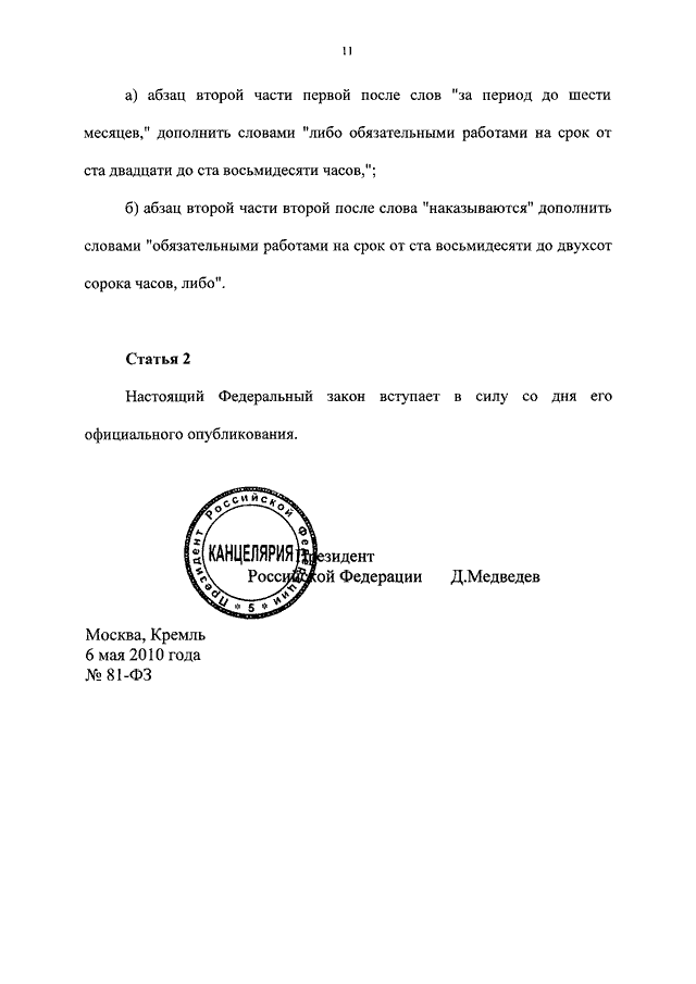 ФЕДЕРАЛЬНЫЙ ЗАКОН от 06.05.2010 N 81-ФЗ