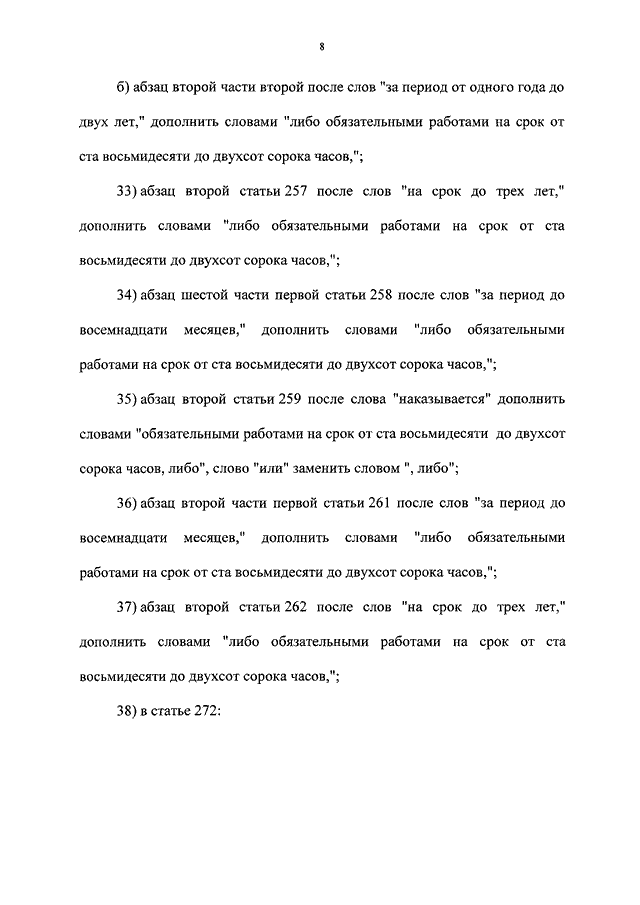 "О ВНЕСЕНИИ ИЗМЕНЕНИЙ В УГОЛОВНЫЙ КОДЕКС РОССИЙСКОЙ ФЕДЕРАЦИИ В ЧАСТИ НАЗНАЧЕНИЯ НАКАЗАНИЯ В ВИДЕ ОБЯЗАТЕЛЬНЫХ РАБОТ"