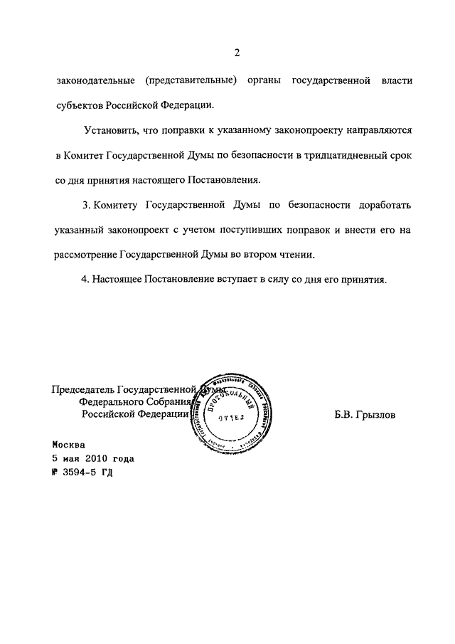 ПОСТАНОВЛЕНИЕ ГД ФС РФ от 05.05.2010 N 3594-5 ГД
