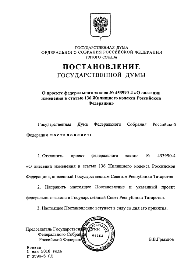 ПОСТАНОВЛЕНИЕ ГД ФС РФ от 05.05.2010 N 3599-5 ГД